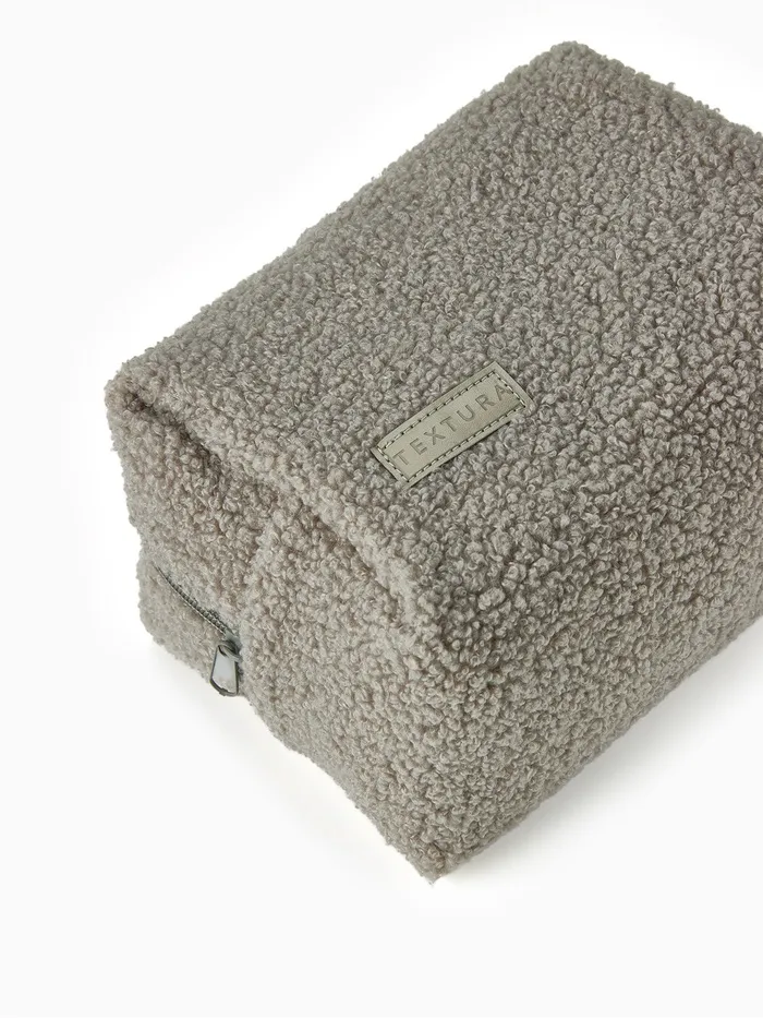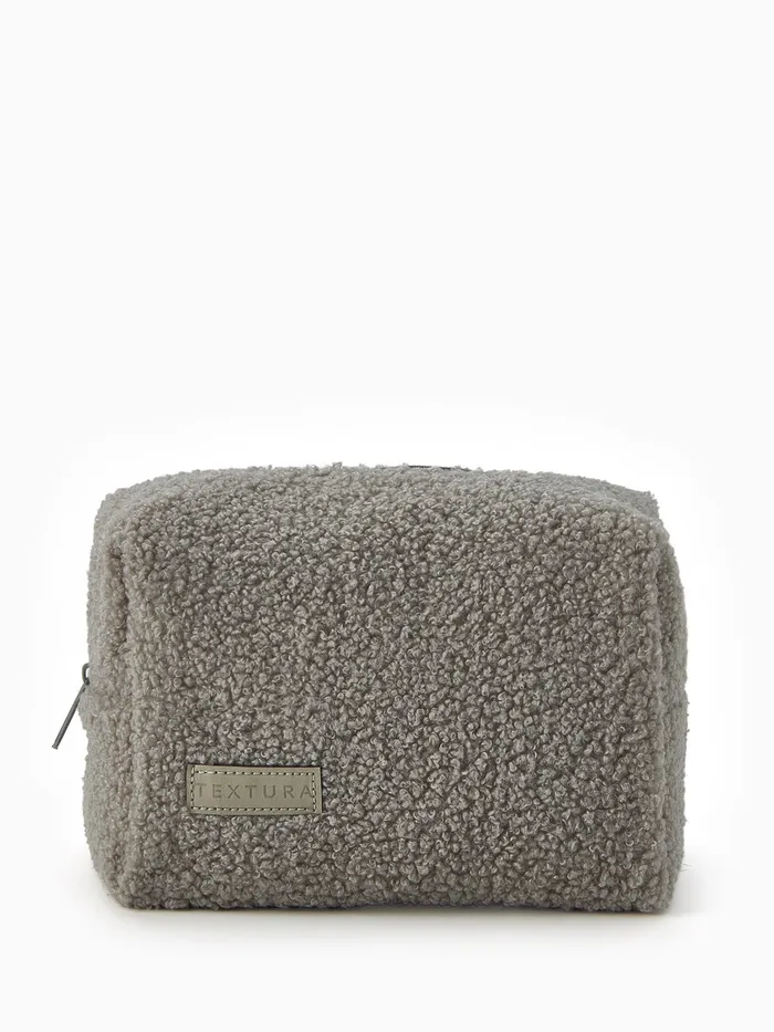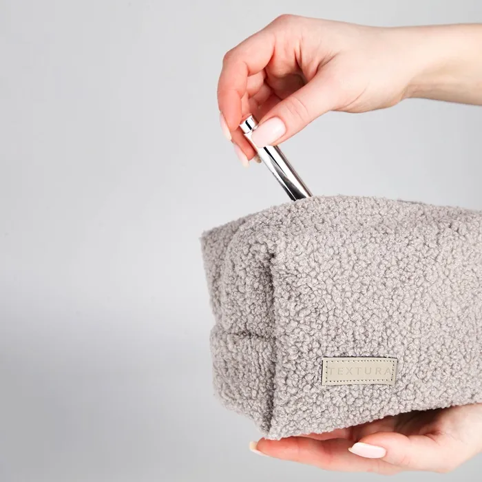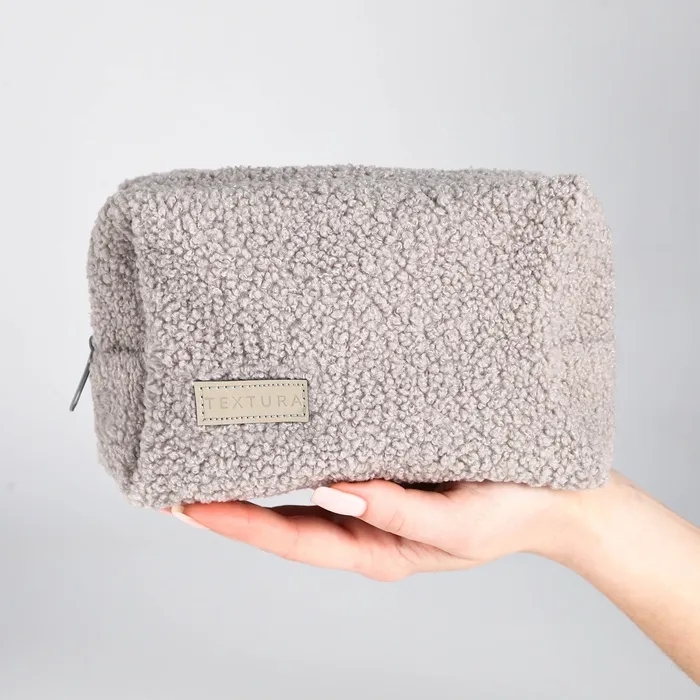 Косметичка женская на молнии TEXTURA, объёмная, плюшевая, серая — Характеристики