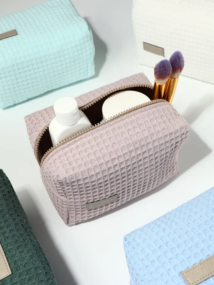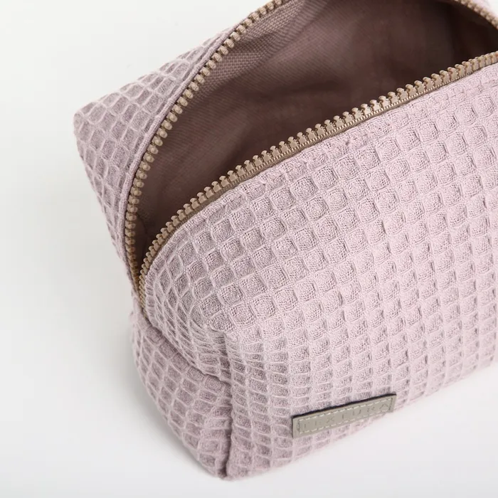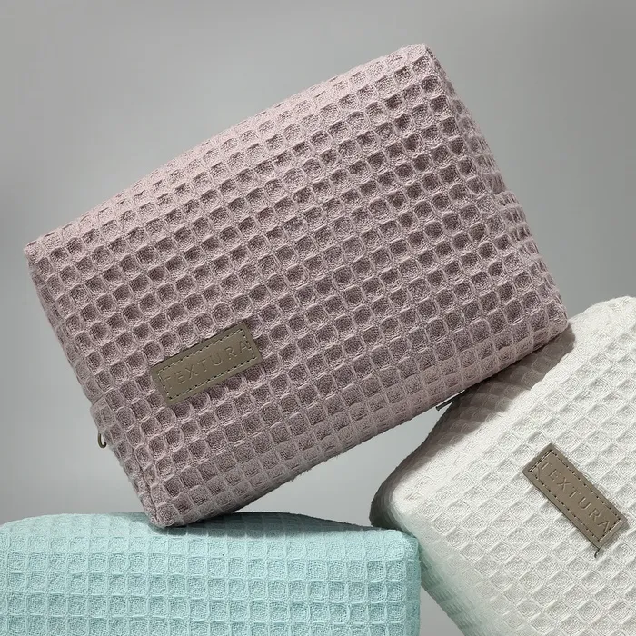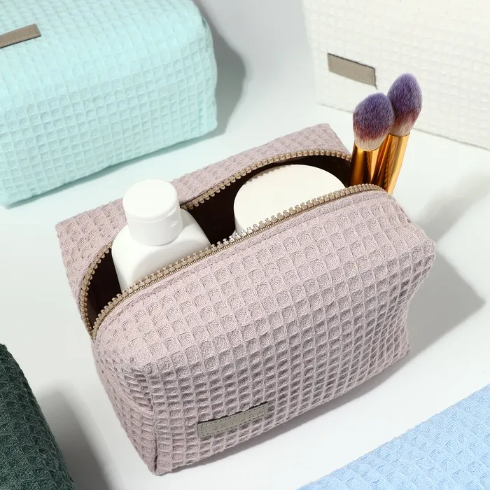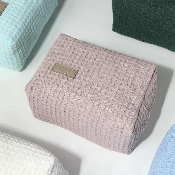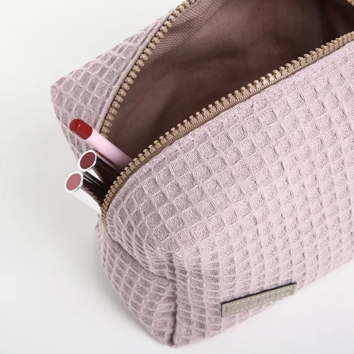 Объёмная женская косметичка в нежном пыльно-розовом оттенке — стильный аксессуар для хранения косметики и мелочей. Мягкий текстиль с вафельной текстурой приятен на ощупь, а удобная молния надёжно защищает содержимое. Компактный размер подходит для ежедневного использования или путешествий.