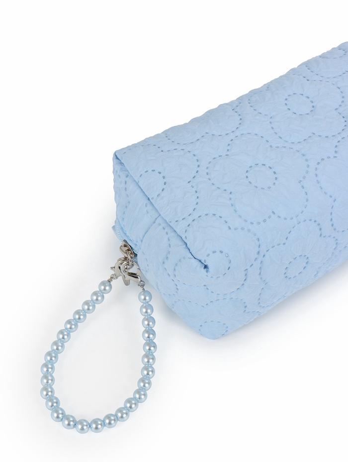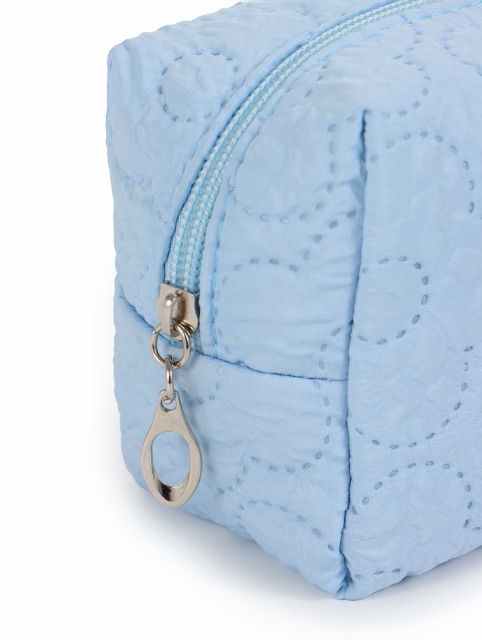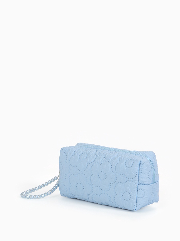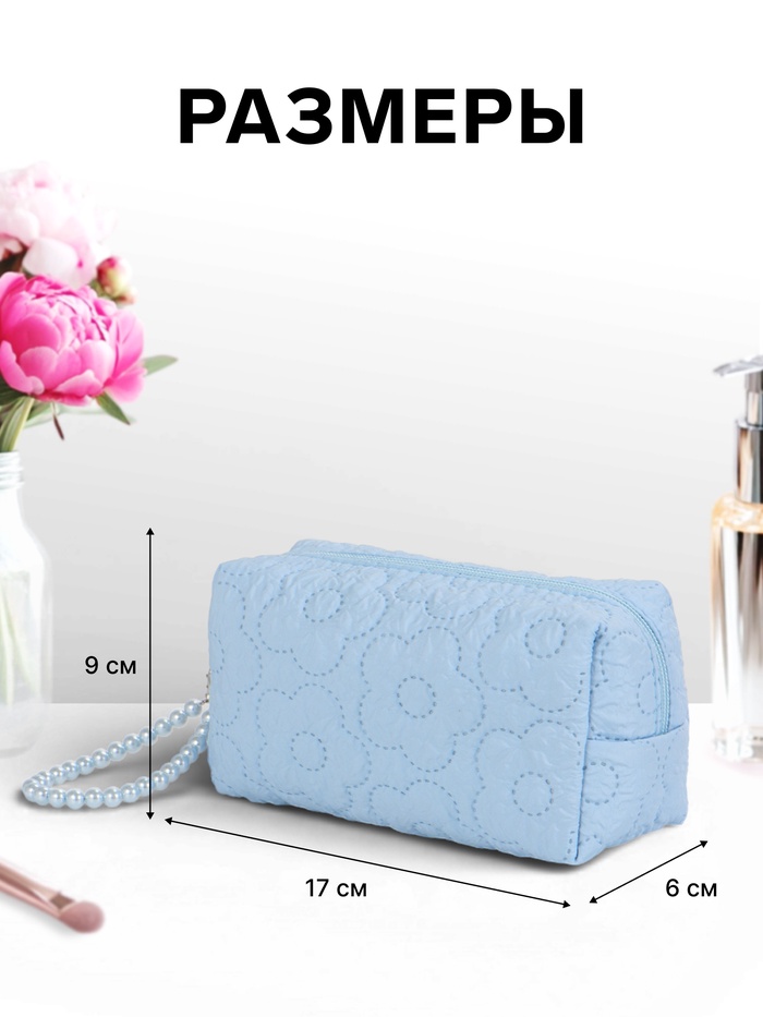 Элегантная голубая косметичка с ручкой из бусин — идеальный спутник каждой женщины, ценящей практичность и стиль. Этот аксессуар сочетает в себе компактные размеры с достаточной емкостью, позволяя аккуратно разместить ежедневные косметические средства. Полиэстеровая ткань обеспечивает долговечность и защиту от влаги.