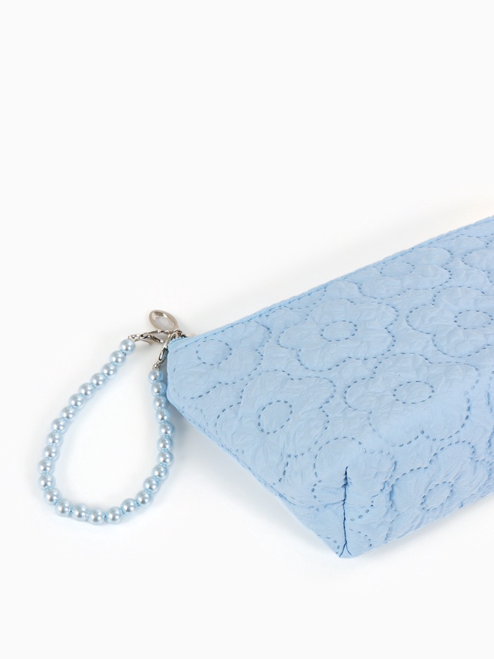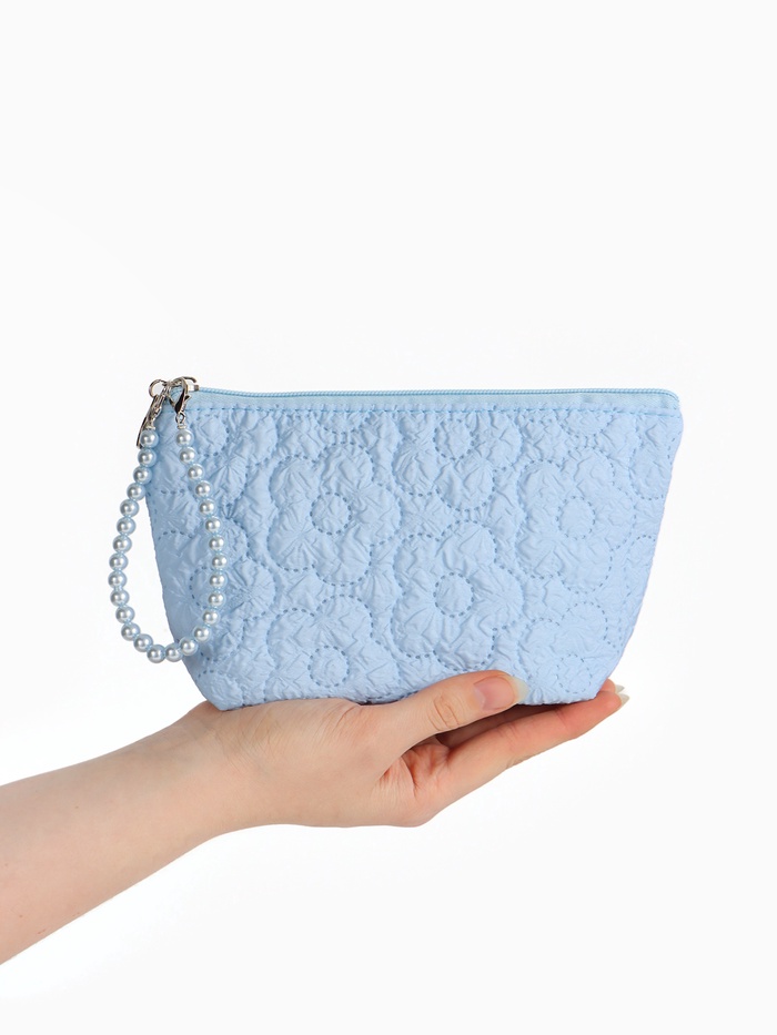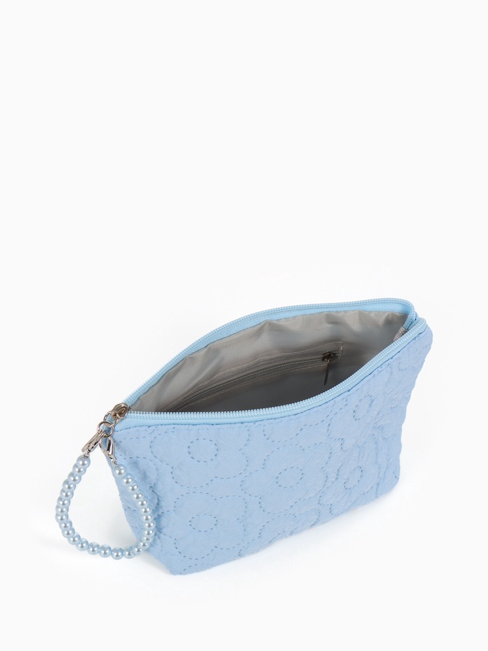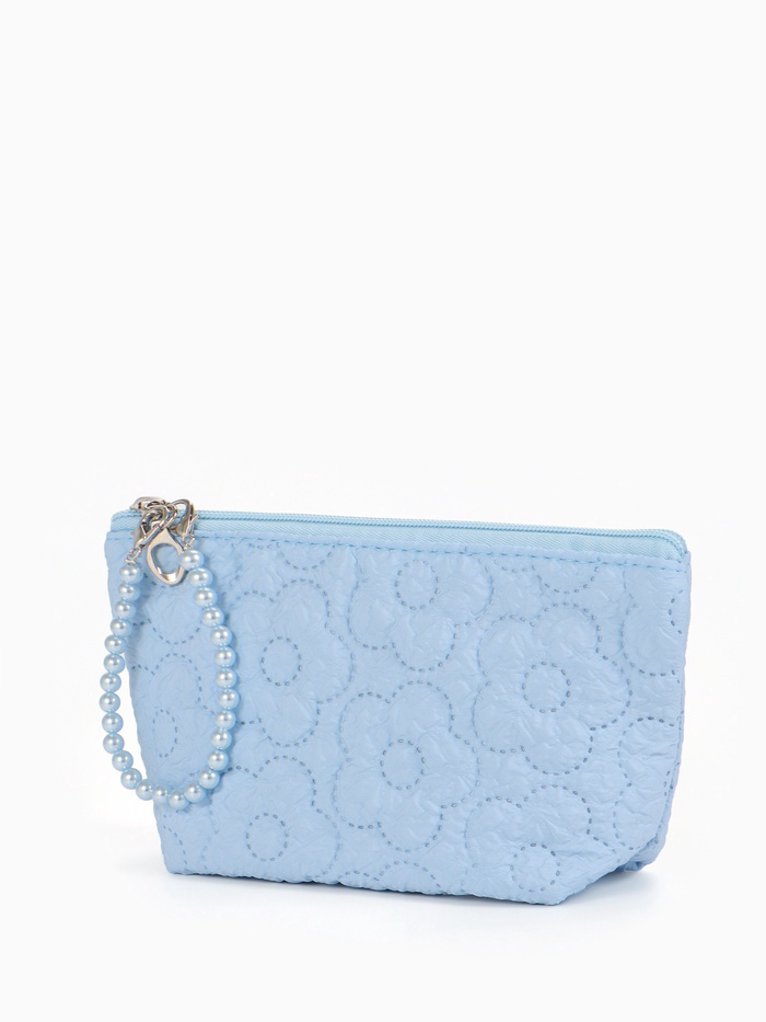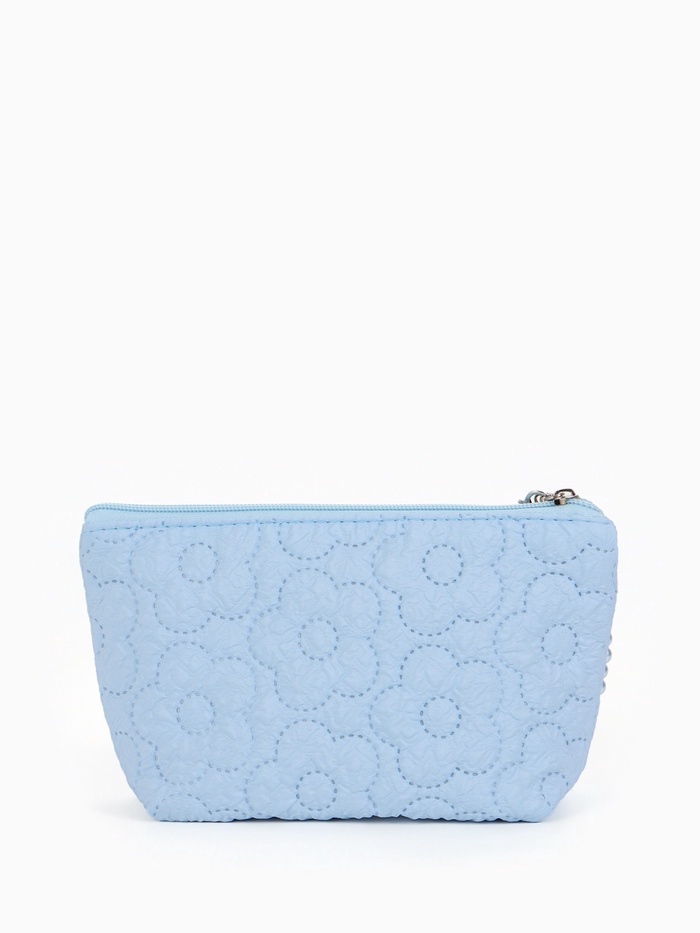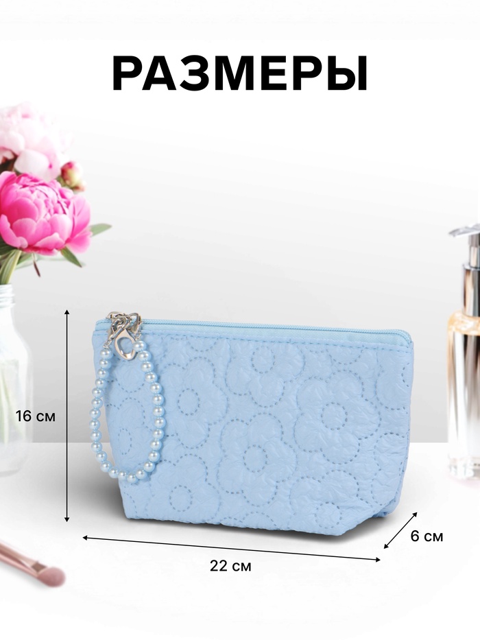 Эта небесно-голубая косметичка с узором станет вашим надежным спутником в мире красоты. Сочетая стиль и практичность, это небольшое, но ёмкое дополнение к вашей современной жизни. Она органично впишется в ваш повседневный ритм и станет яркой деталью, привлекающей внимание.