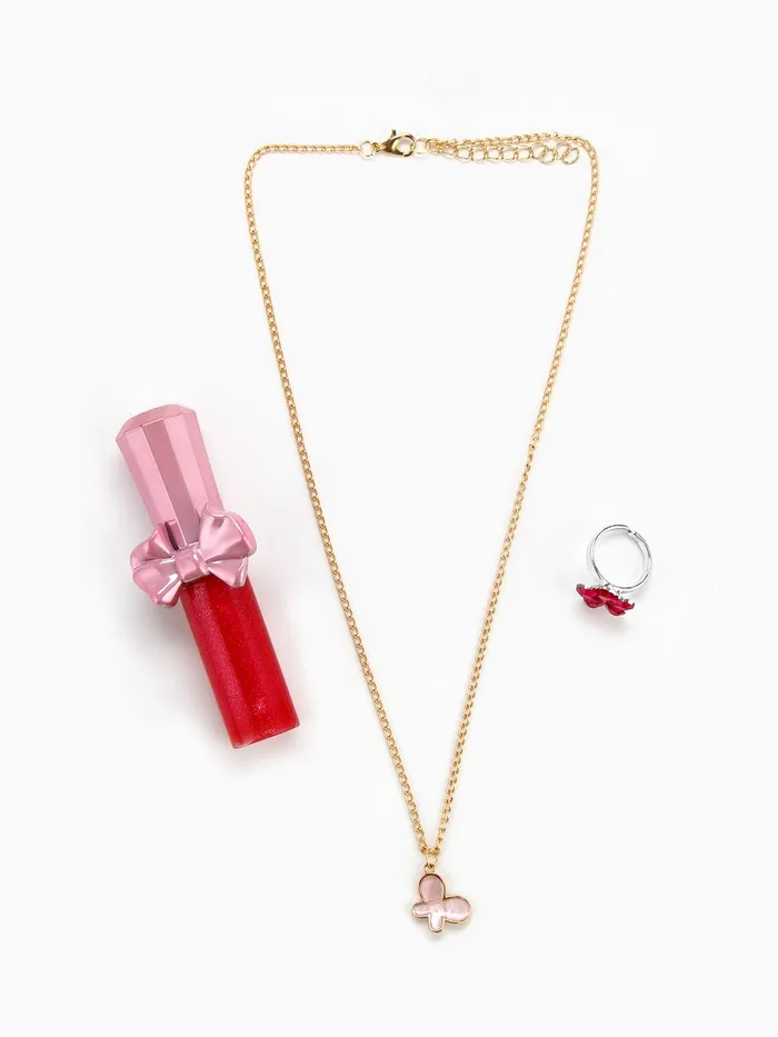 Косметика детская и аксессуары «Краше всех» для девочек, блеск розовый 8 г, цепочка с кулоном и кольцо — Характеристики