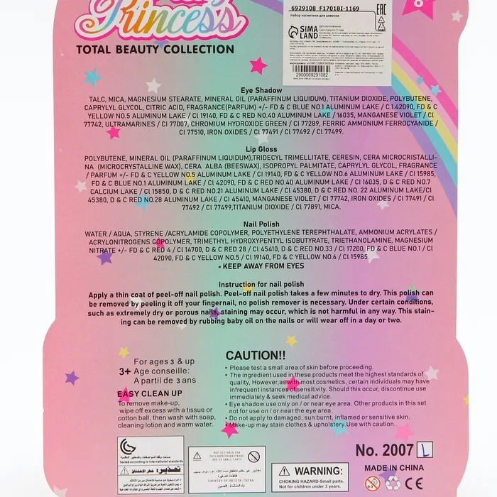 Детская косметика позволит ребёнку устраивать эксперименты со своим стилем. Набор поможет девочке подобрать оптимальные варианты для вечерних и дневных образов. Косметика без труда смывается водой или с помощью ватного диска и безопасна для детской кожи.
