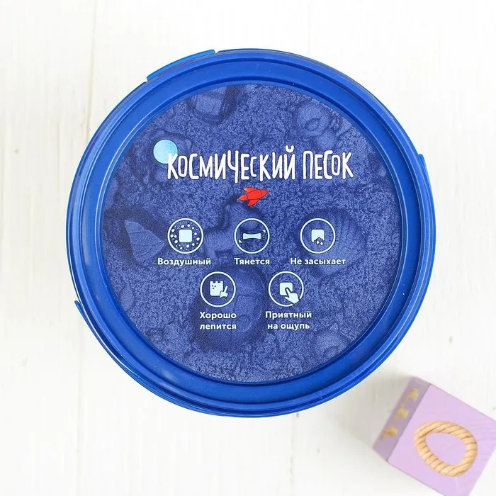 Играть с космическим песком ребёнок сможет когда и где захочет. Материал не прилипает к рукам и легко убирается со всех поверхностей. А удобная упаковка позволяет компактно хранить песок и избегать его загрязнения.
