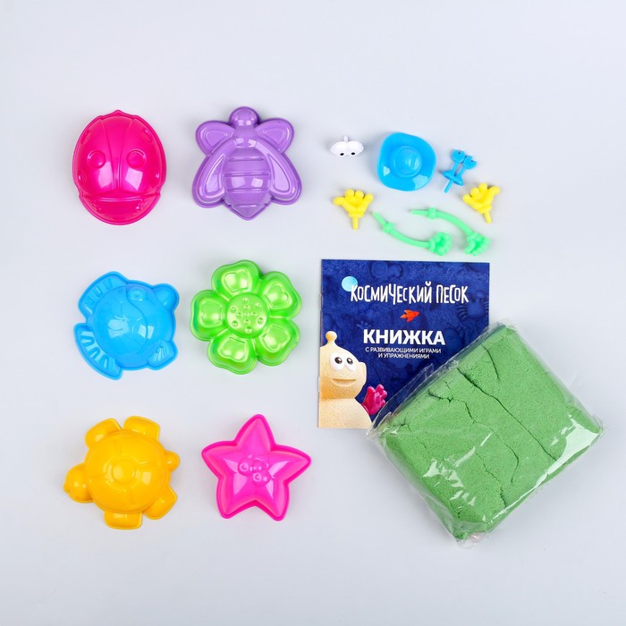 Космический песок зелёный в коробке, 1 кг + песочница + формочки — Характеристики
