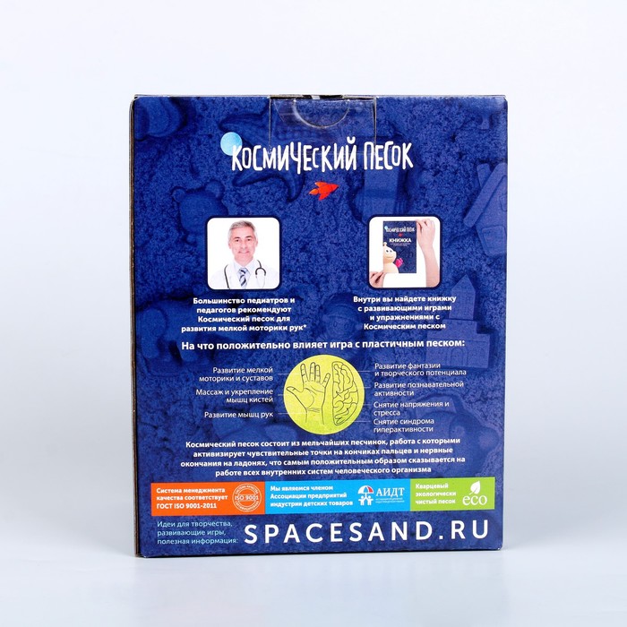 Космический песок — это инновационный материал для творчества и игр. Он похож на обычный влажный песок, но в то же время он абсолютно сухой. Песок легко рассыпается в руках, оставляя ладони сухими и чистыми. Хорошо сохраняет форму во время лепки.