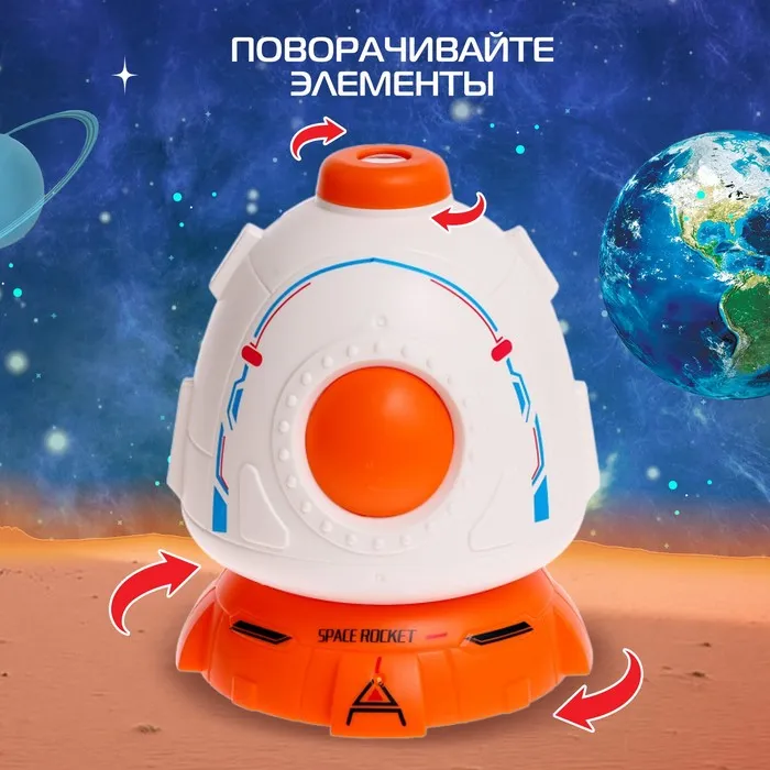Космический проектор в виде ракеты привлечёт внимание трогательным дизайном и надолго займёт малыша. Игрушка научит создавать изображения, поможет развить усидчивость, воображение и абстрактное мышление.