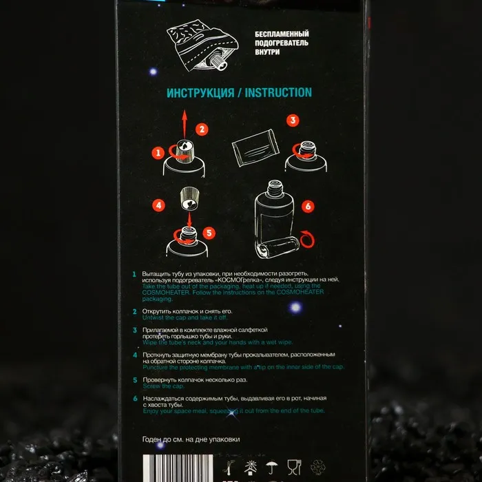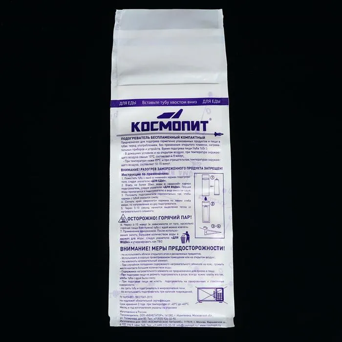 Сытные и вкусные блюда в проверенной тяжёлыми условиями космоса упаковке станут отличной альтернативой сухпайку во время выхода на природу, на охоте или рыбалке. Недостаток места, отсутствие костра и даже экстремальная погода больше не помешают обеду. Вам нужно будет просто разогреть тюбик на портативном нагревателе из комплекта и насладиться вкусной пищей.