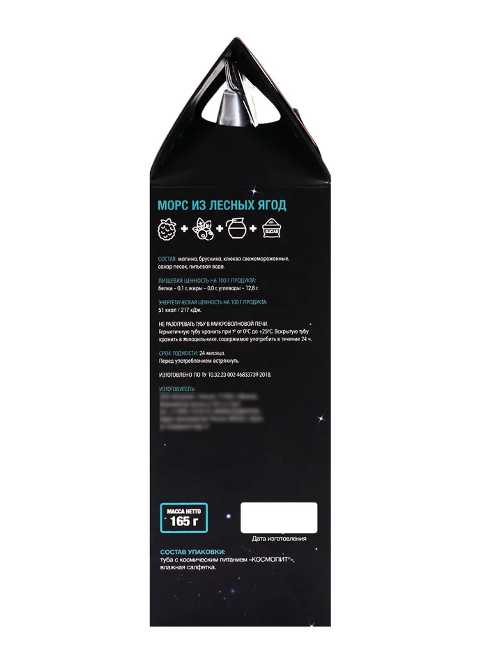 Космическое питание «Морс из лесных ягод», в тюбике, 115 г — Характеристики