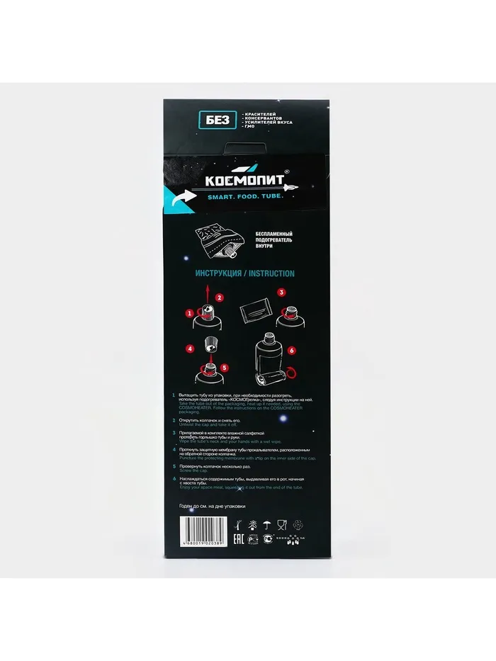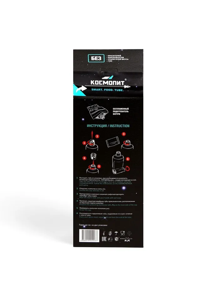 Сытные и вкусные блюда в проверенной тяжёлыми условиями космоса упаковке станут отличной альтернативой сухпайку во время выхода на природу, на охоте или рыбалке. Недостаток места, отсутствие костра и даже экстремальная погода больше не помешают обеду. Вам достаточно просто разогреть тюбик на портативном нагревателе из комплекта и насладиться вкусной пищей.