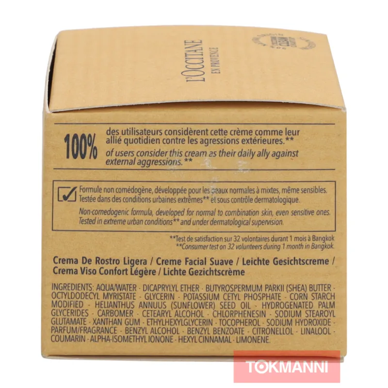 Этот крем не только увлажняет, но и защищает вашу кожу от воздействия внешних факторов. Он быстро впитывается, не оставляя жирного блеска, и идеально подходит для всех типов кожи. Позаботьтесь о своей коже с нежным и эффективным кремом L'Occitane.