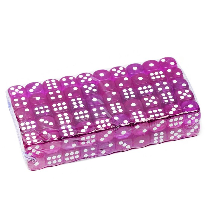 Кости игральные кубики 1.4×1.4 см, фасовка 100 шт., розовые-фиолетовые — Характеристики