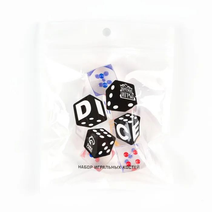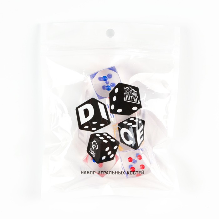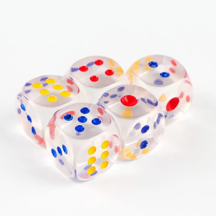 Кости игральные кубики 2.5×2.5 см, прозрачные, набор 5 шт. — Характеристики