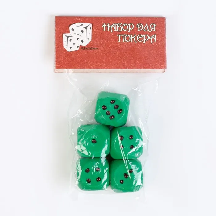 Набор состоит из пяти игральных кубиков размером 1.5 x 1.5 см. Кубики изготовлены из качественных материалов и имеют яркую расцветку, что делает их не только функциональными, но и привлекательными. С помощью этого набора вы сможете играть в различные настольные игры, включая нарды, покер, а также использовать их для обучения и развития навыков у детей.