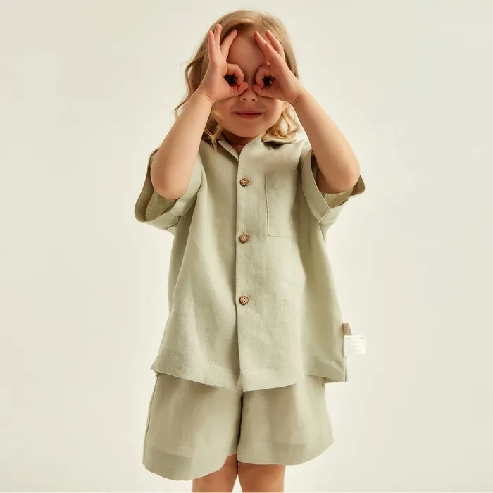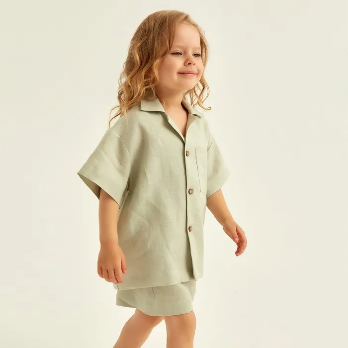 Костюм детский домашний (рубашка и шорты) SL HOME, размер 30 (98-104 см), светло-зелёный — Характеристики