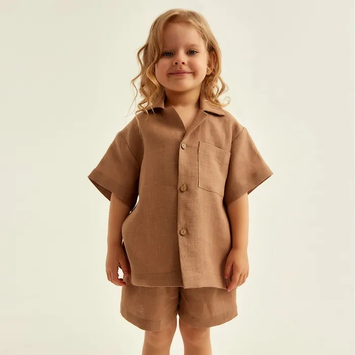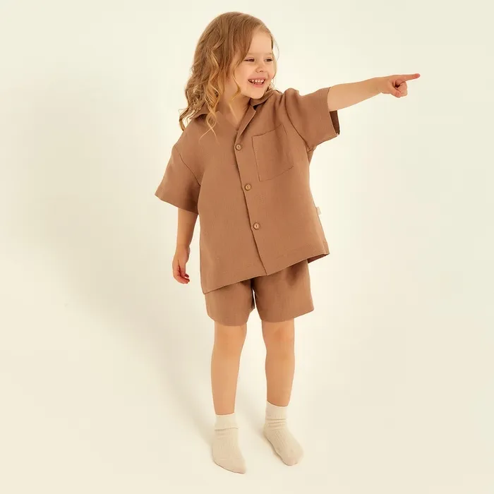 Костюм детский домашний (рубашка и шорты) SL HOME, размер 34 (122-128 см), цвет кофейный — Характеристики