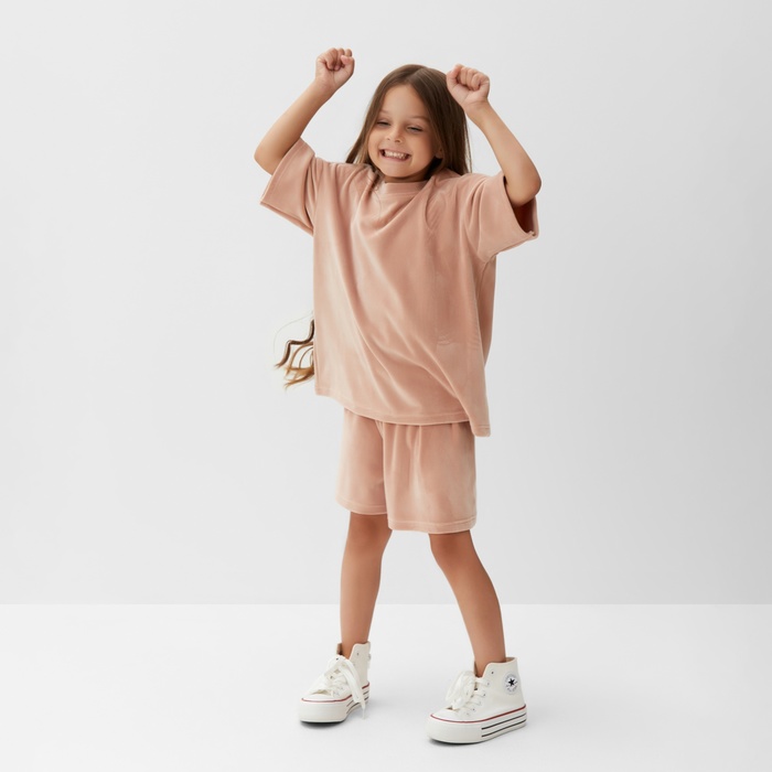 Костюм детский (футболка, шорты) KAFTAN Plushy, размер 34 (122-128 см), бежевый
