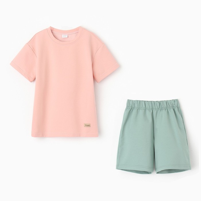 Костюм детский (футболка, шорты) MINAKU, бежевый/олива, рост 104 см — Характеристики
