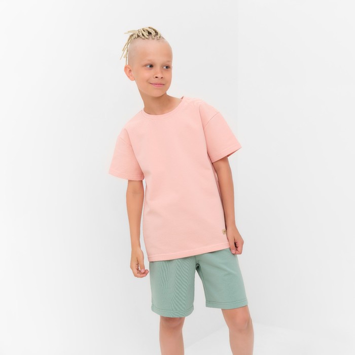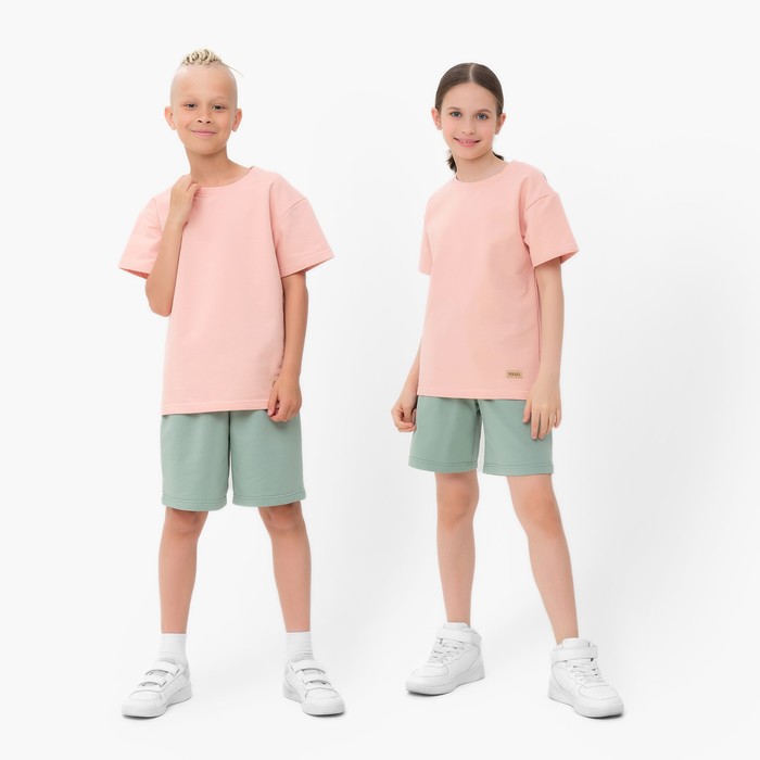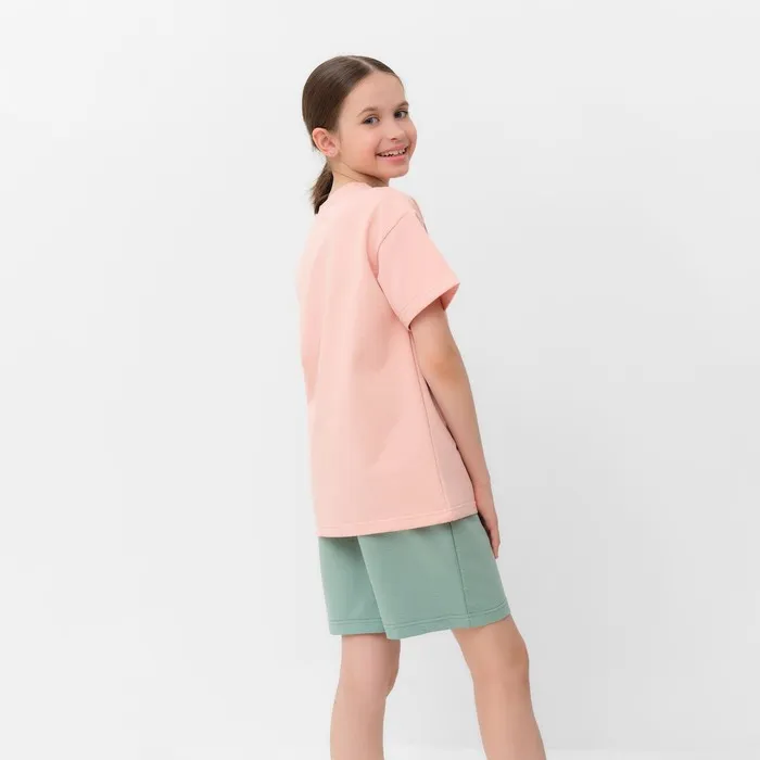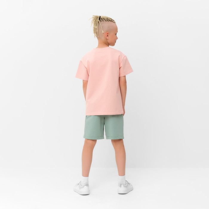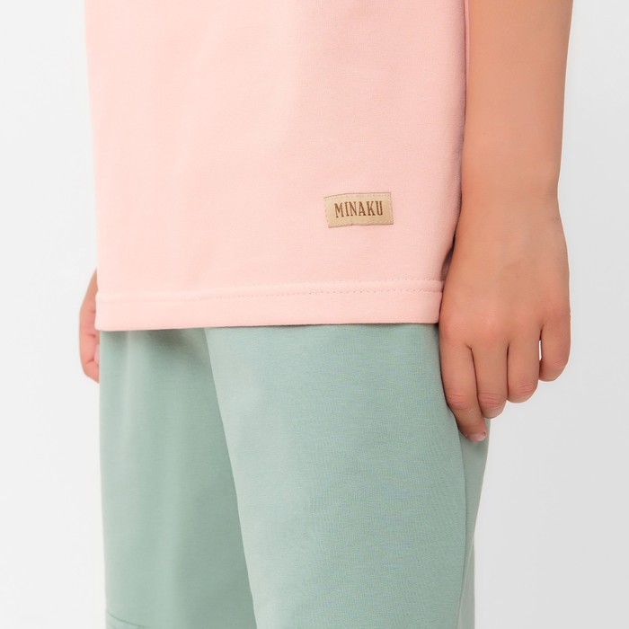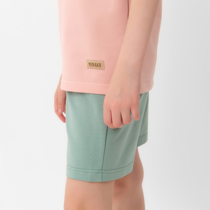 Костюм детский (футболка, шорты) MINAKU, бежевый/олива, рост 146 см — Характеристики