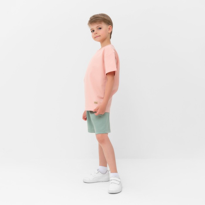 Костюм детский (футболка, шорты) MINAKU, бежевый/олива, рост 98 см — Характеристики