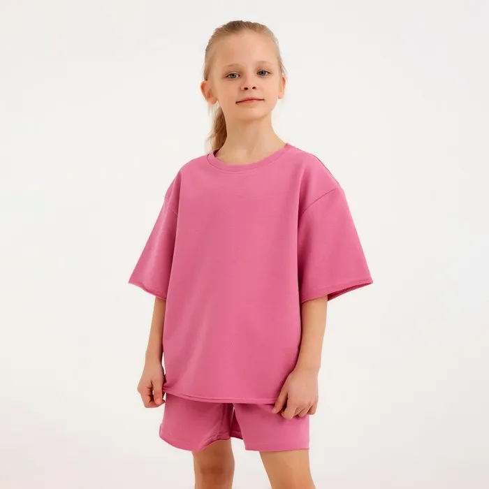 Костюм детский (футболка, шорты) MINAKU: Casual Collection, пудровый, рост 110 см