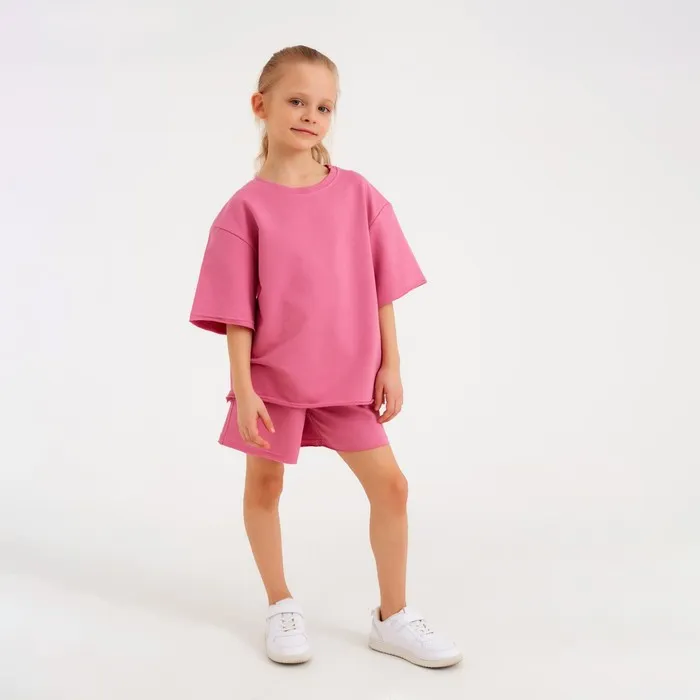 Костюм детский (футболка, шорты) MINAKU: Casual Collection, пудровый, рост 128 см — Характеристики