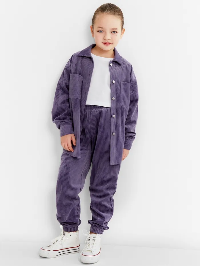 Элегантный и практичный костюм станет отличным выбором для маленьких модниц. Удобный комплект выполнен из вельвета, который обладает мягкой текстурой и особой прочностью. Он прекрасно подойдет как для прогулок на свежем воздухе, так и для посещения мероприятий.