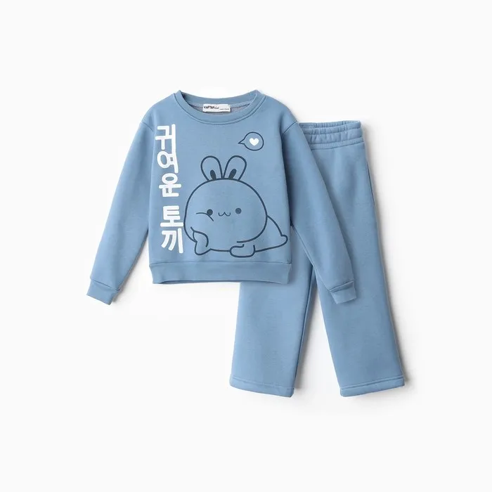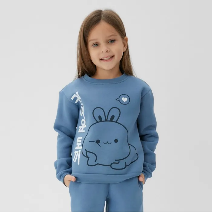 Костюм детский с начёсом (свитшот, брюки) KAFTAN Кролик, размер 34 (122-128 см), голубой — Характеристики