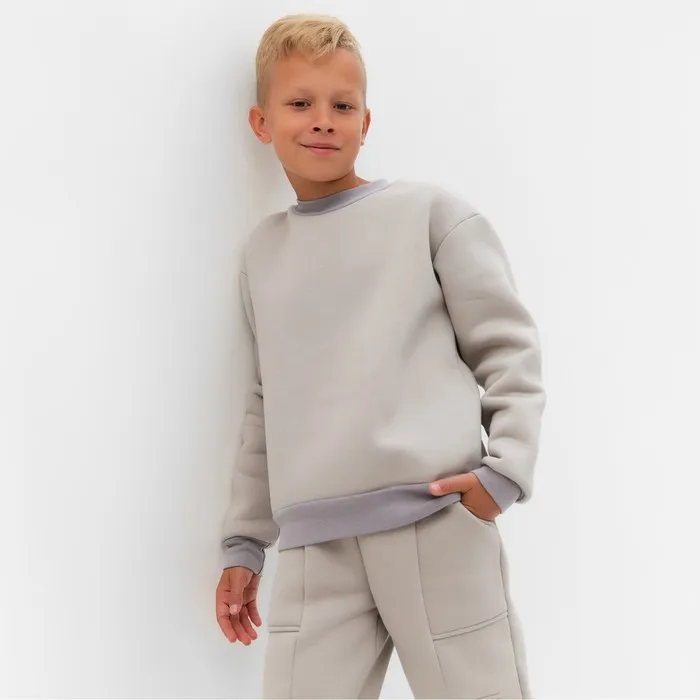 Костюм детский с начёсом (свитшот, брюки) MINAKU, серый, рост 158 см — Характеристики