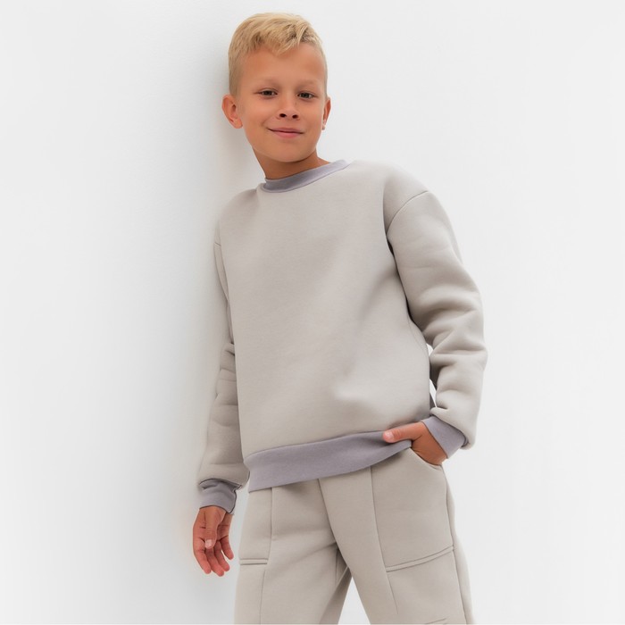 Костюм детский с начёсом (свитшот, брюки) MINAKU, серый, рост 164 см