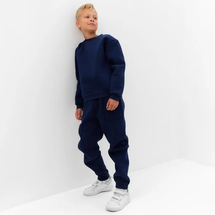 Костюм детский с начёсом (свитшот, брюки) MINAKU, синий, рост 146 см — Характеристики