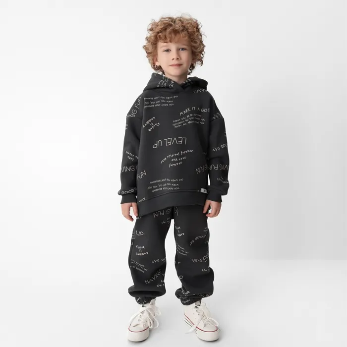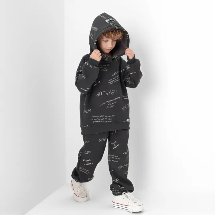 Костюм детский с начёсом (толстовка, брюки) KAFTAN Level up, размер 28 (86-92 см), серый — Характеристики