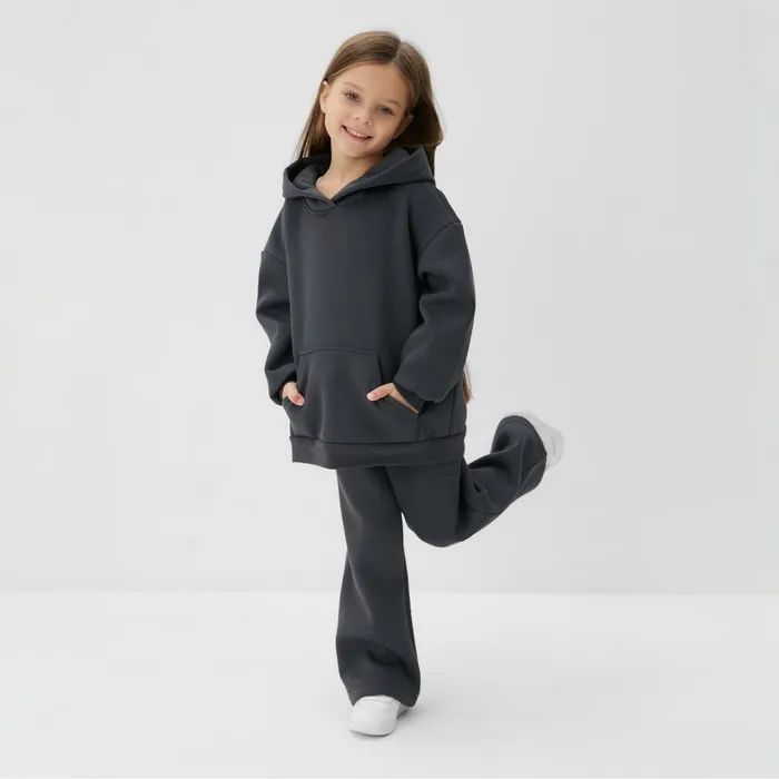 Костюм детский с начёсом (толстовка, брюки) KAFTAN, размер 38 (146-152 см), серый — Характеристики