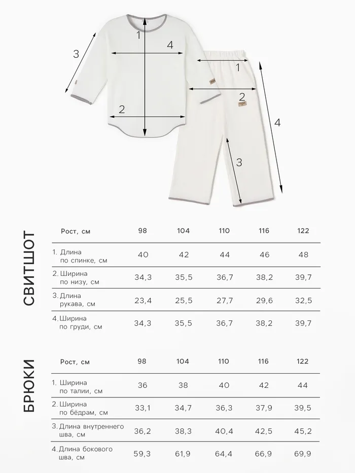 Костюм детский (свитшот и брюки) MINAKU, цвет молочный, рост 110 см — Характеристики