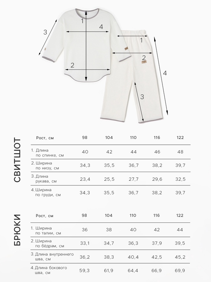 Костюм детский (свитшот и брюки) MINAKU, цвет молочный, рост 122 см — Характеристики