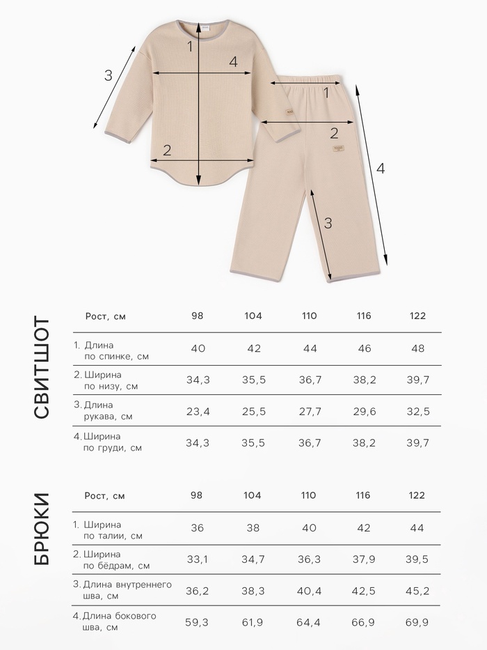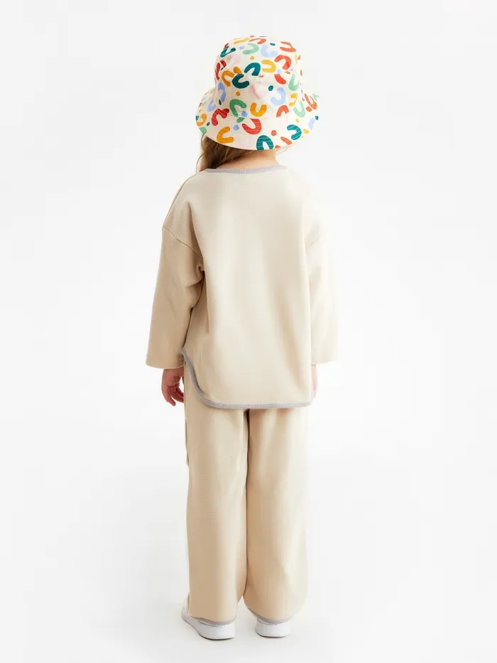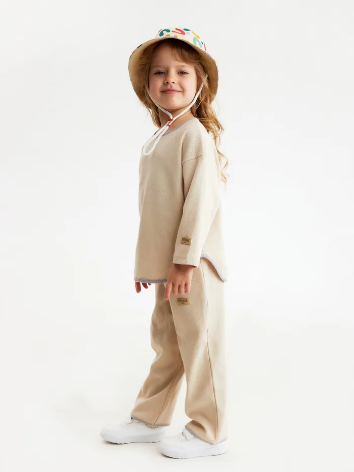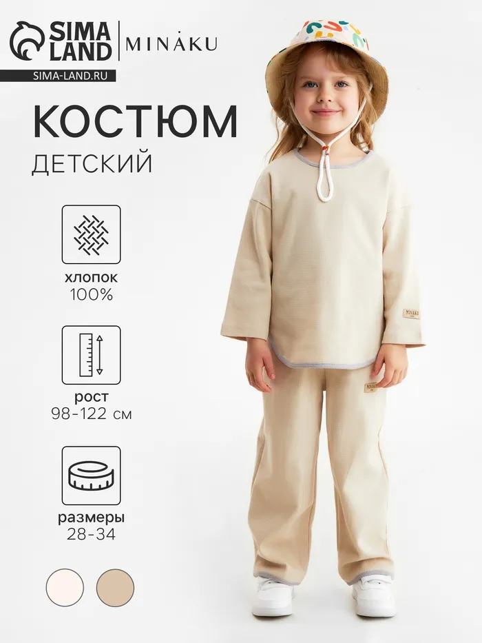 Костюм детский (свитшот и брюки) MINAKU: Waffle, бежевый, рост 110 см — Характеристики