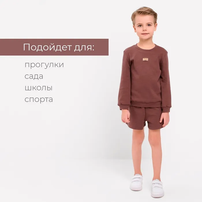 Костюм детский (свитшот, шорты) MINAKU, коричневый, рост 116 см — Характеристики