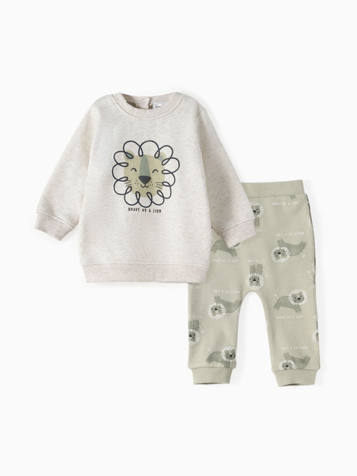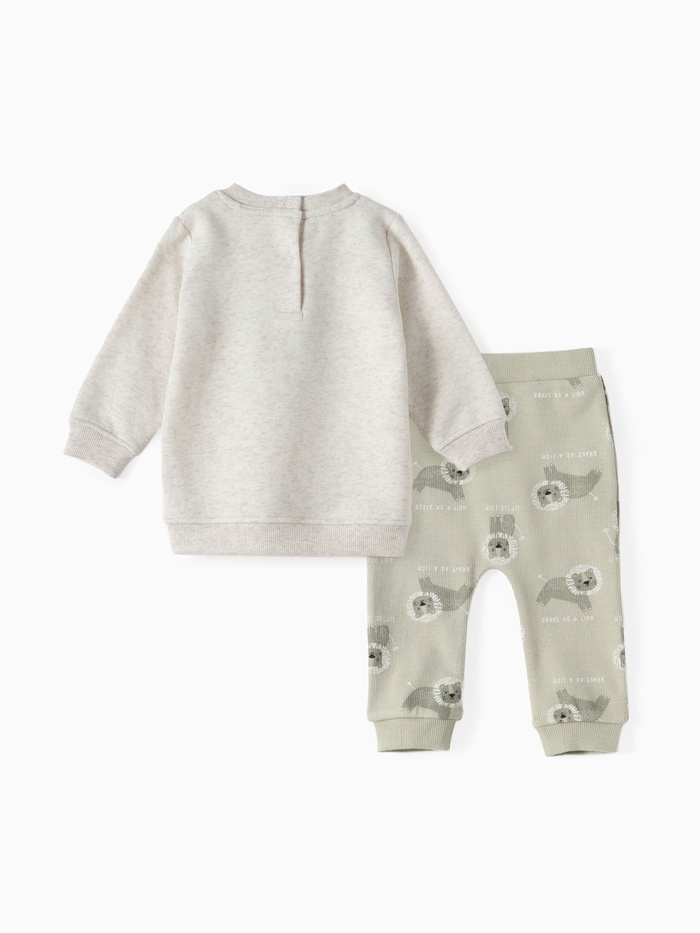 Подарите своему новорожденному или малышу первые шаги в мир моды с нашим очаровательным костюмчиком. Состоящий из мягкого свитшота и штанишек в стильном серо-зеленом сочетании. Он обеспечит максимальный комфорт и позволит вашему крохе чувствовать себя уютно в любой ситуации, будь то сон, игра или прогулка.