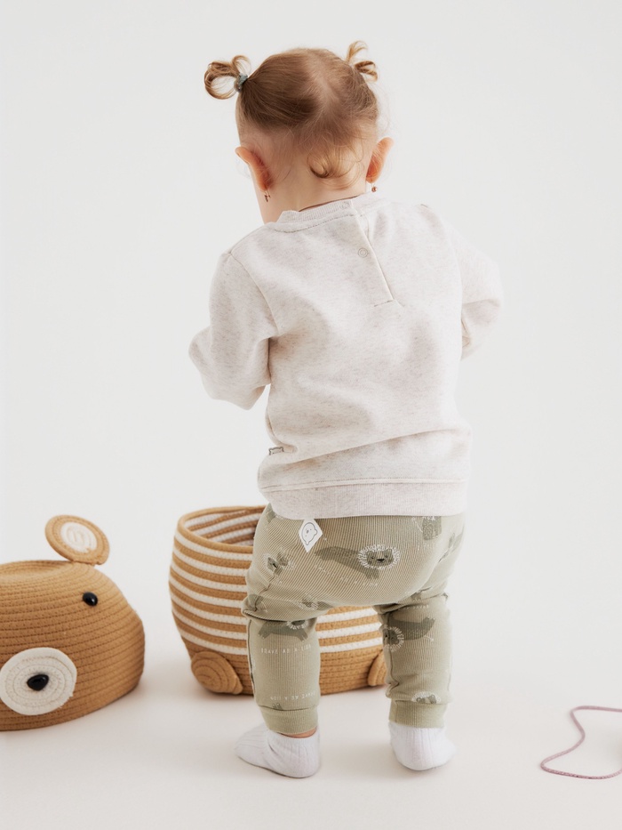 Подарите своему новорожденному или малышу первые шаги в мир моды с нашим очаровательным костюмчиком. Состоящий из мягкого свитшота и штанишек в стильном серо-зеленом сочетании. Он обеспечит максимальный комфорт и позволит вашему крохе чувствовать себя уютно в любой ситуации, будь то сон, игра или прогулка.