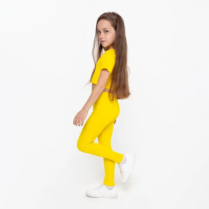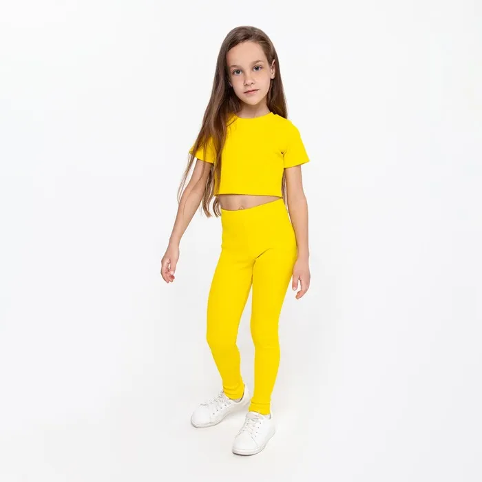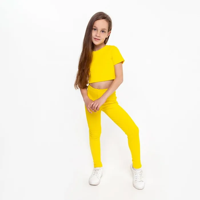Костюм для девочки (футболка, лосины), цвет жёлтый, рост 122 см — Характеристики