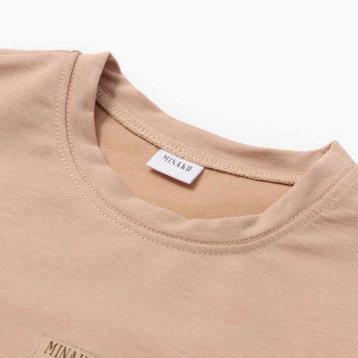 Костюм для девочки (футболка, шорты) MINAKU, бежевый/ пыльно-сиреневый, рост 104 см — Характеристики