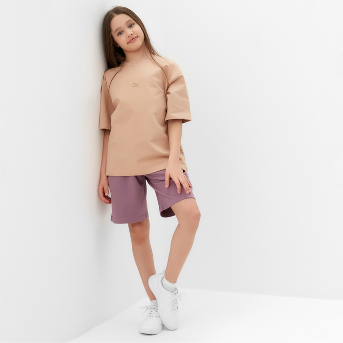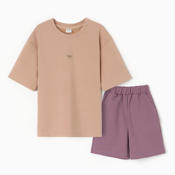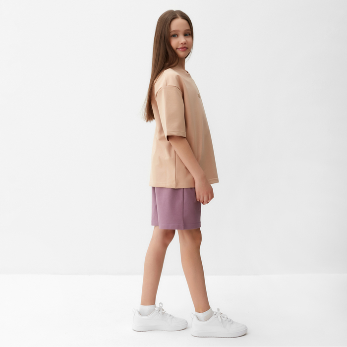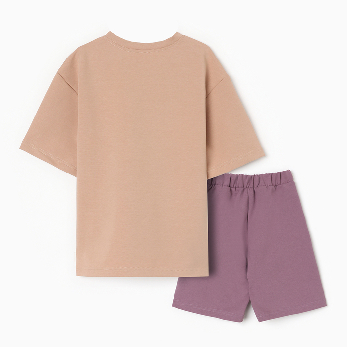 Костюм для девочки (футболка, шорты) MINAKU, бежевый/ пыльно-сиреневый, рост 122 см — Характеристики