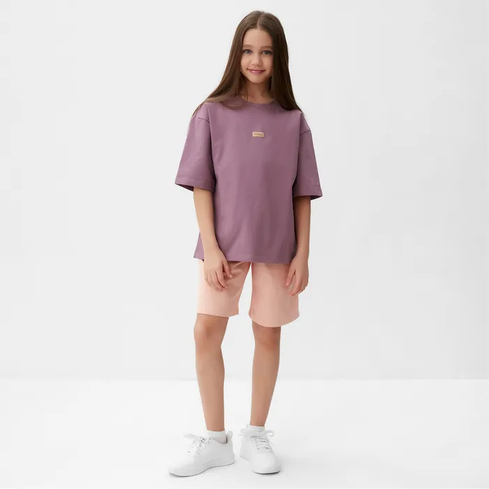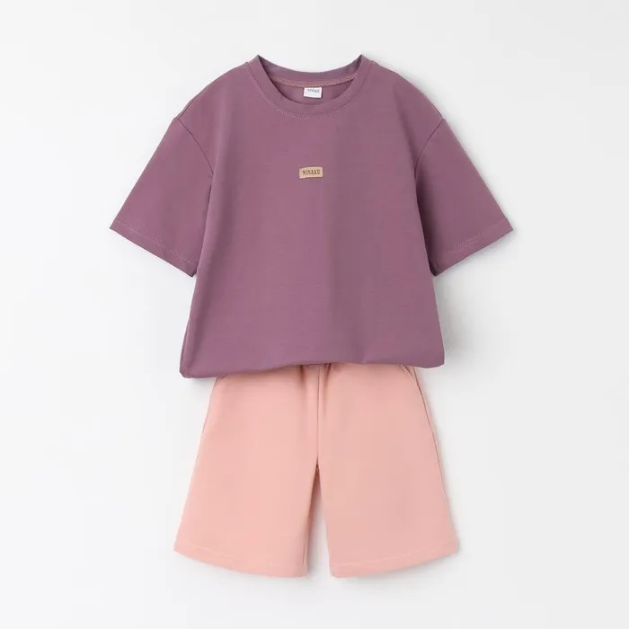 Костюм для девочки (футболка, шорты) MINAKU, пыльно-сиреневый/ бежевый, рост 110 см — Характеристики