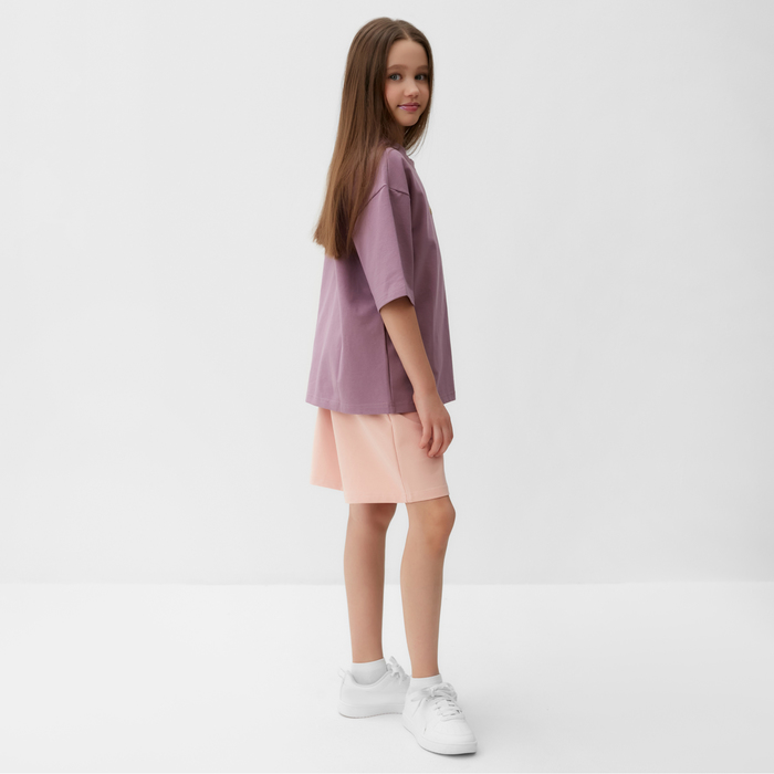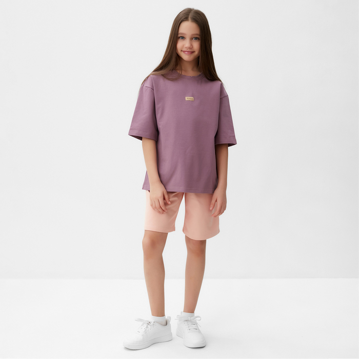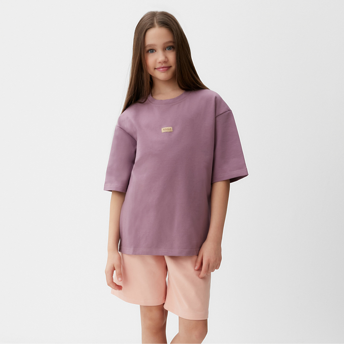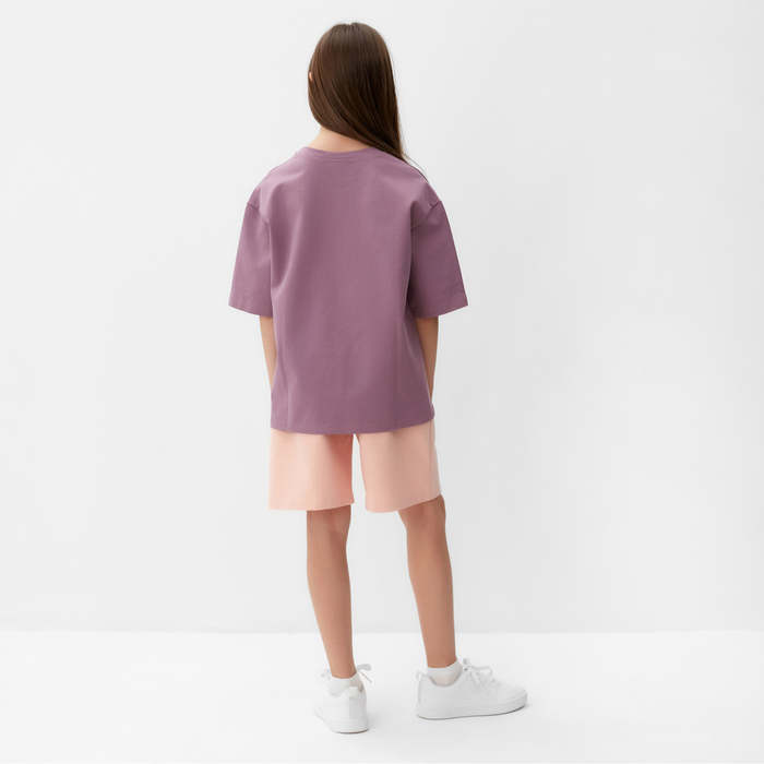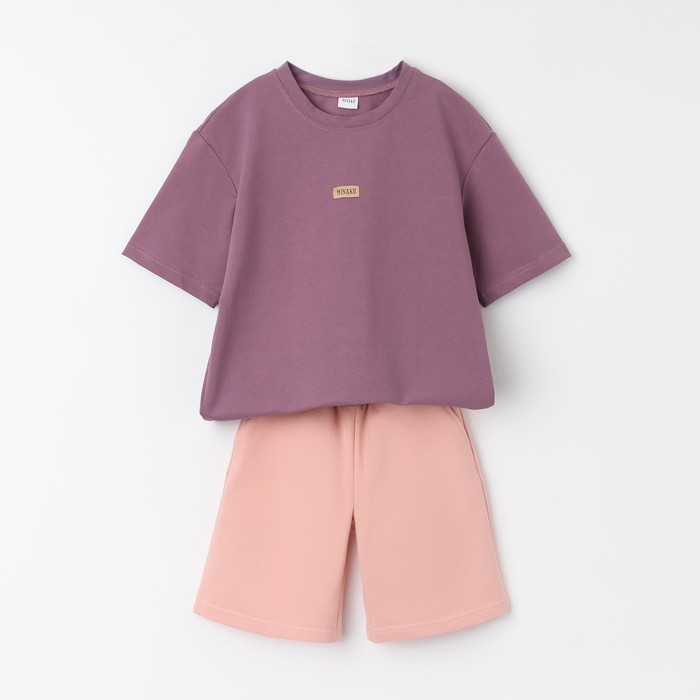 Костюм для девочки (футболка, шорты) MINAKU, пыльно-сиреневый/ бежевый, рост 116 см — Характеристики