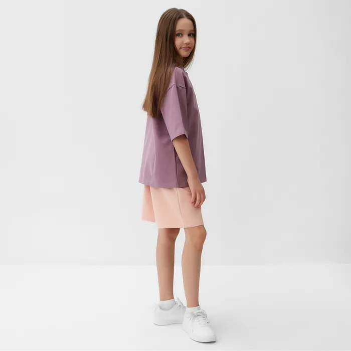 Костюм для девочки (футболка, шорты) MINAKU, пыльно-сиреневый/ бежевый, рост 122 см — Характеристики