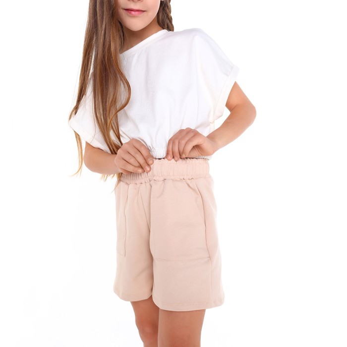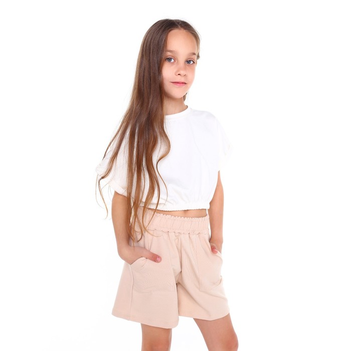 Костюм для девочки (футболка/шорты), цвет молочный, рост 152 см