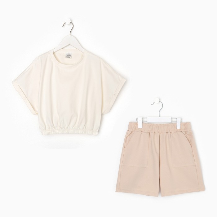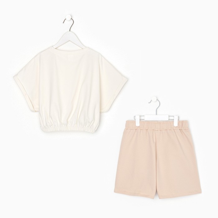 Костюм для девочки (футболка/шорты), цвет молочный, рост 152 см — Характеристики
