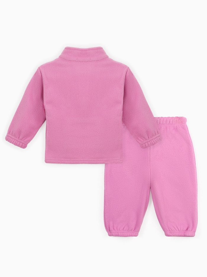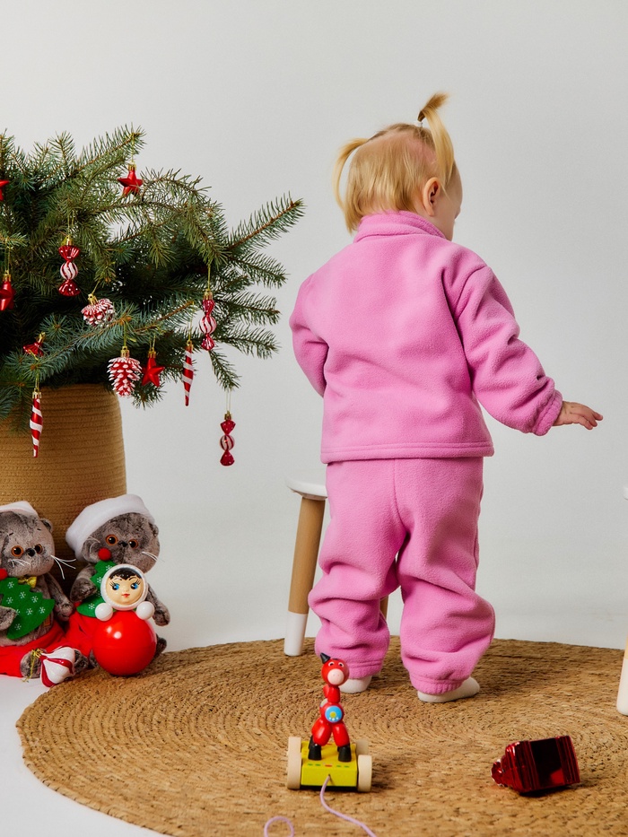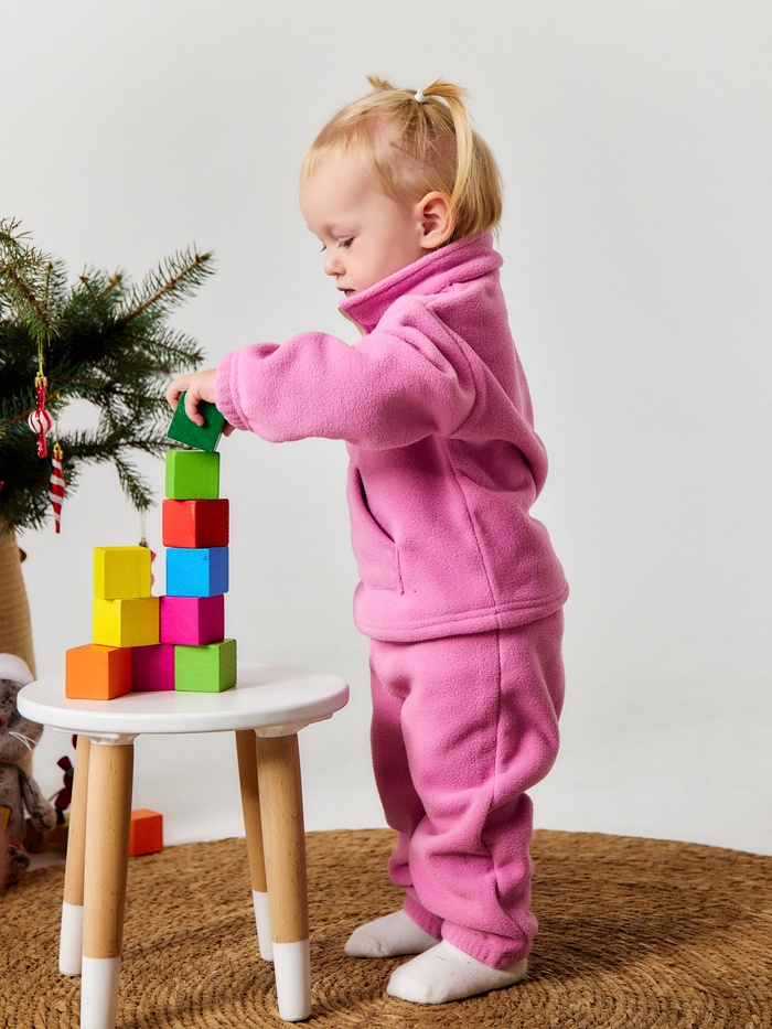 Нежный розовый костюм из мягкого флиса создан для активных малышек, которые познают мир. Сохраняет тепло и комфорт во время прогулок.