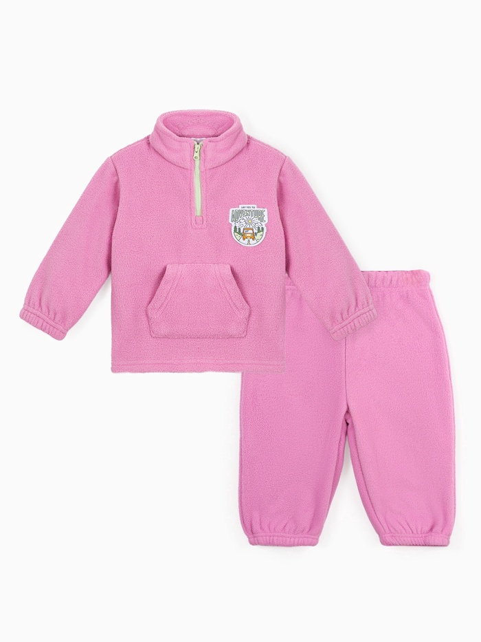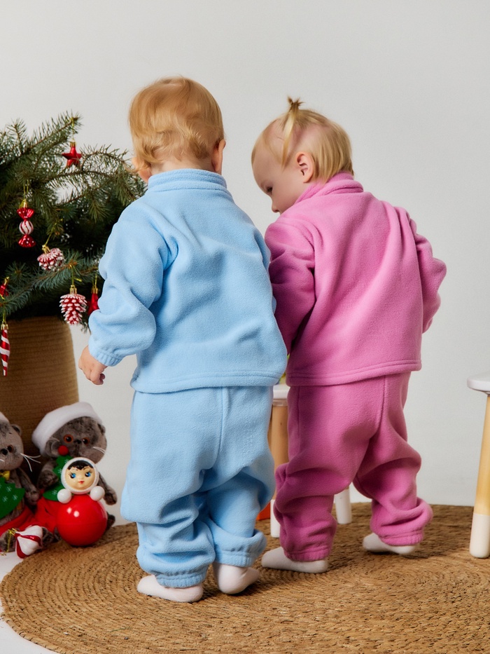 Нежный розовый костюм из мягкого флиса создан для активных малышек, которые познают мир. Сохраняет тепло и комфорт во время прогулок.