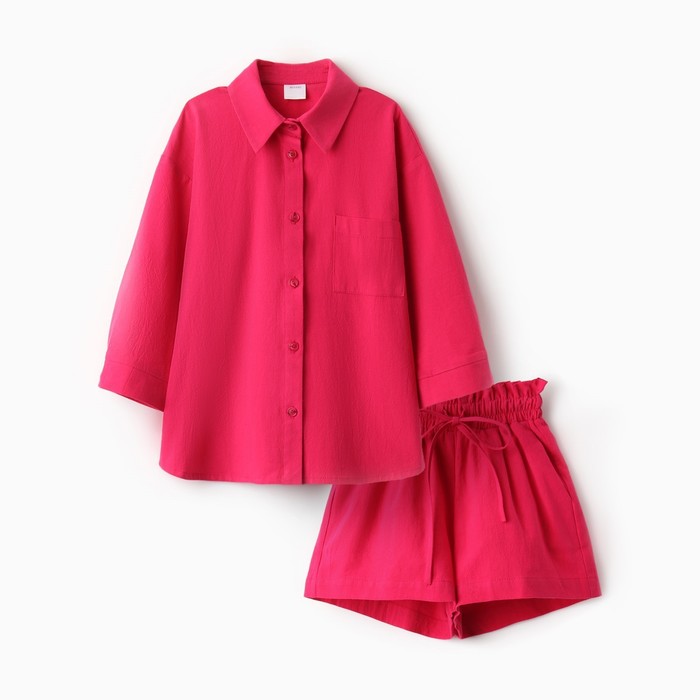 Костюм для девочки (рубашка и шорты) MINAKU, фуксия, рост 134-140 см — Характеристики