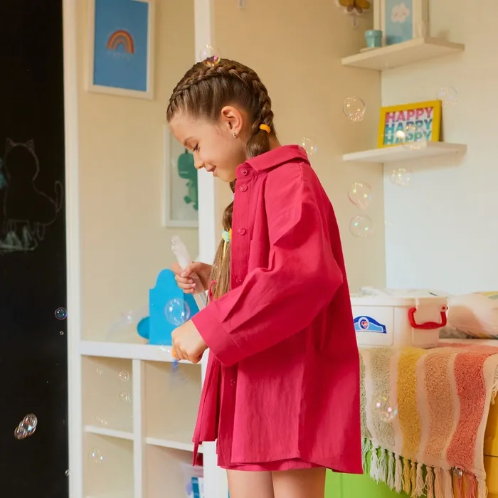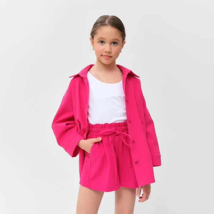 Костюм для девочки (рубашка и шорты) MINAKU, фуксия, рост 134-140 см — Характеристики